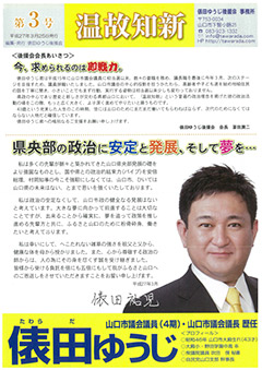 俵田ゆうじ後援会では、不定期で機関誌『温故知新』を発行しています。